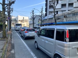 そこで警察に要望して、夕方に限って、車両側の青信号の時間を2秒程度、延長していただきました